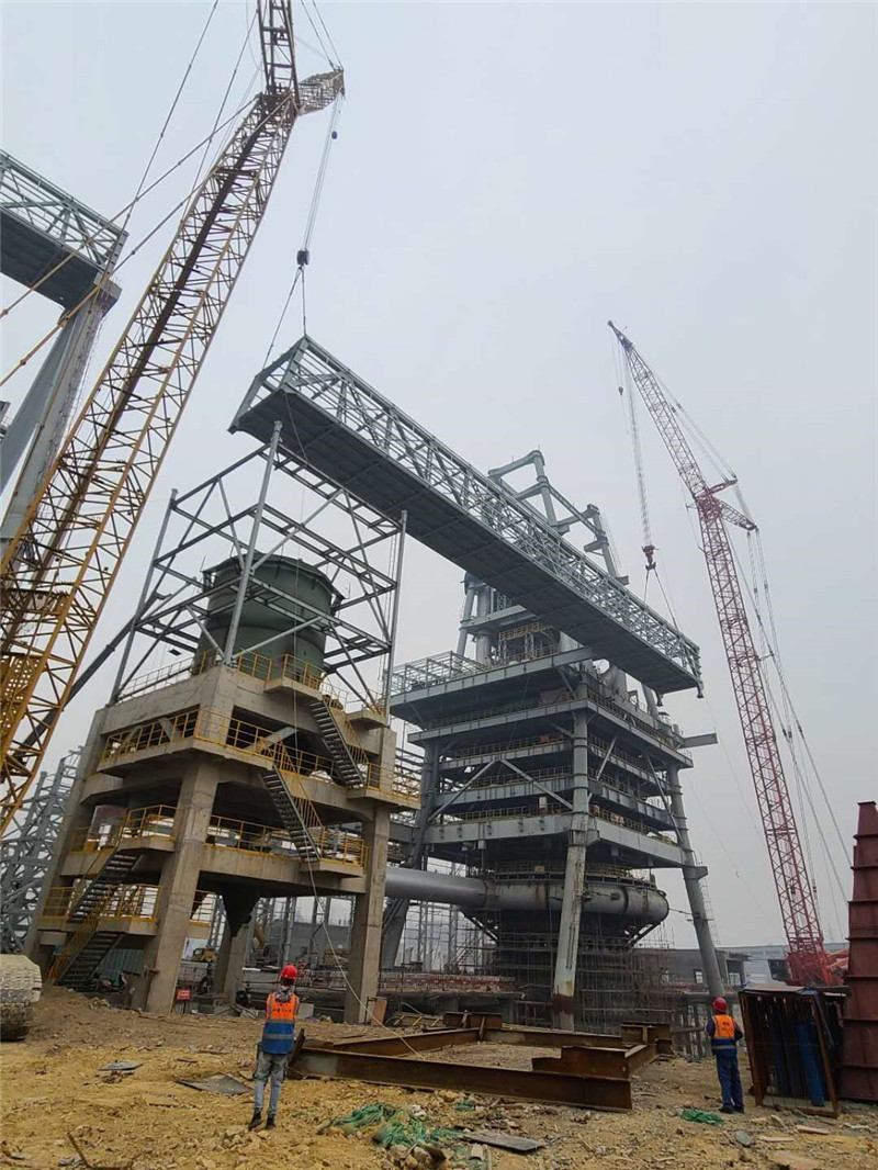 5#通廊在4000噸米塔吊和350噸履帶吊相互合力下,經(jīng)過(guò)近6個(gè)小時(shí)的吊裝,順利達(dá)到68.90米就位高度,按計(jì)劃節(jié)點(diǎn)提前7天完成高爐主皮帶通廊的整體鋼結(jié)構(gòu)安裝。這是萊鋼1#3800m3高爐本體工程中吊裝高度最高、單體重量最重、跨度最大的鋼結(jié)構(gòu)件,5號(hào)通廊成功安裝,為后續(xù)設(shè)備安裝、通廊封閉、設(shè)備單機(jī)調(diào)試等創(chuàng)造了有利條件,同時(shí)給其他各參建單位做了號(hào)的榜樣,便于帶動(dòng)其他工序積極作業(yè)施工。