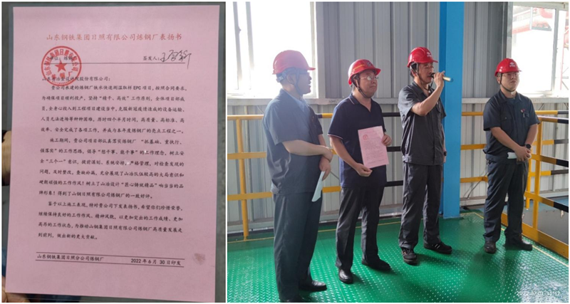 煉鋼廠鐵水智能測溫取樣項目在日照分院總體協(xié)調(diào)下,項目部精心組織,設(shè)計、設(shè)備、施工、調(diào)試各環(huán)節(jié)精益管理,在多變的疫情時空環(huán)境下,克服重重困難,按期高質(zhì)量建成投用,為我公司智信業(yè)務(wù)樹立典范,在日照鋼鐵精品基地再樹豐碑。