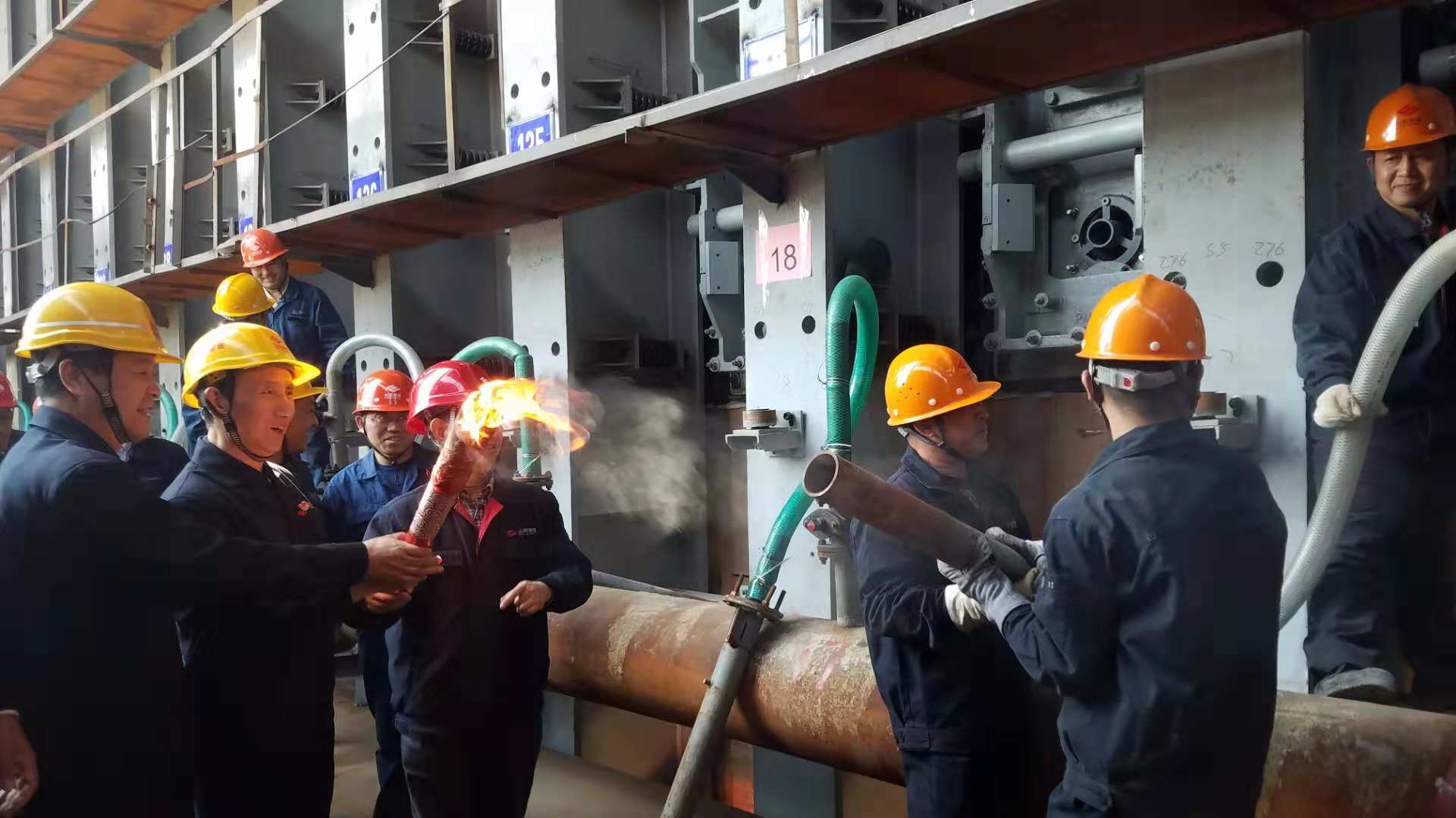 山冶設(shè)計(jì)副總經(jīng)理劉洪亮、日照公司焦化項(xiàng)目部部長(zhǎng)陳昌華出席并發(fā)表熱情洋溢的講話。10點(diǎn)58分,3#焦?fàn)t點(diǎn)火烘爐成功,日照精品基地一期二步第一個(gè)關(guān)鍵節(jié)點(diǎn)順利完成!