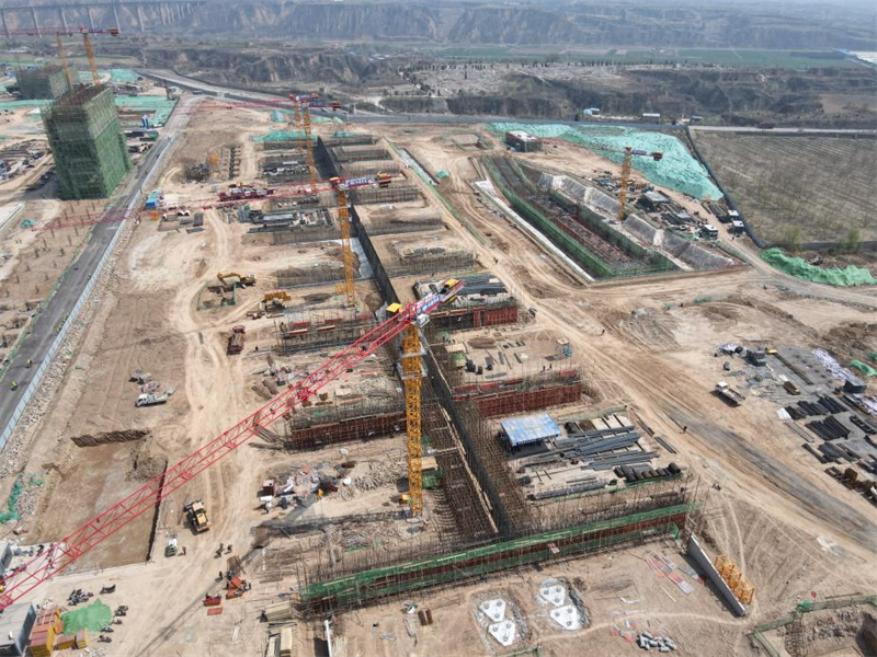 備煤區(qū)域的煤塔施工至30米標(biāo)高,完成土建施工的60%;配煤槽雙曲線漏斗施工完成過半,上部筒倉滑模施工已經(jīng)具備條件;汽車卸料棚深基坑底板基礎(chǔ)完成,正在進(jìn)行地下室部位的施工,總體進(jìn)度完成30%;C型料場在3月上旬完成場地移交后,土建基礎(chǔ)的施工也在加速進(jìn)行,累計(jì)已完成基礎(chǔ)澆筑1萬余立方,已經(jīng)分段進(jìn)行料格擋墻上部結(jié)構(gòu)的施工。