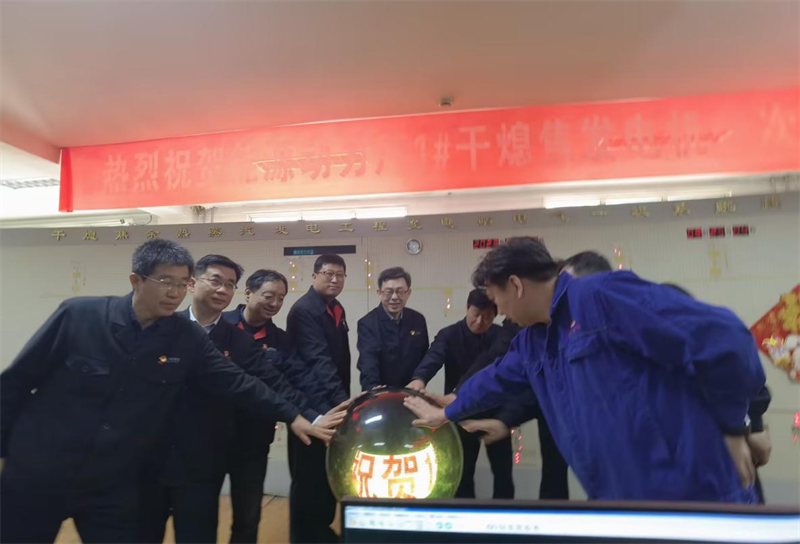 3月30日9點18分,在熱能車間三樓電氣主控室,山冶設計總承包的山鋼股份萊蕪分公司能源動力廠1號干熄焦發(fā)電機舉行了并網(wǎng)儀式。