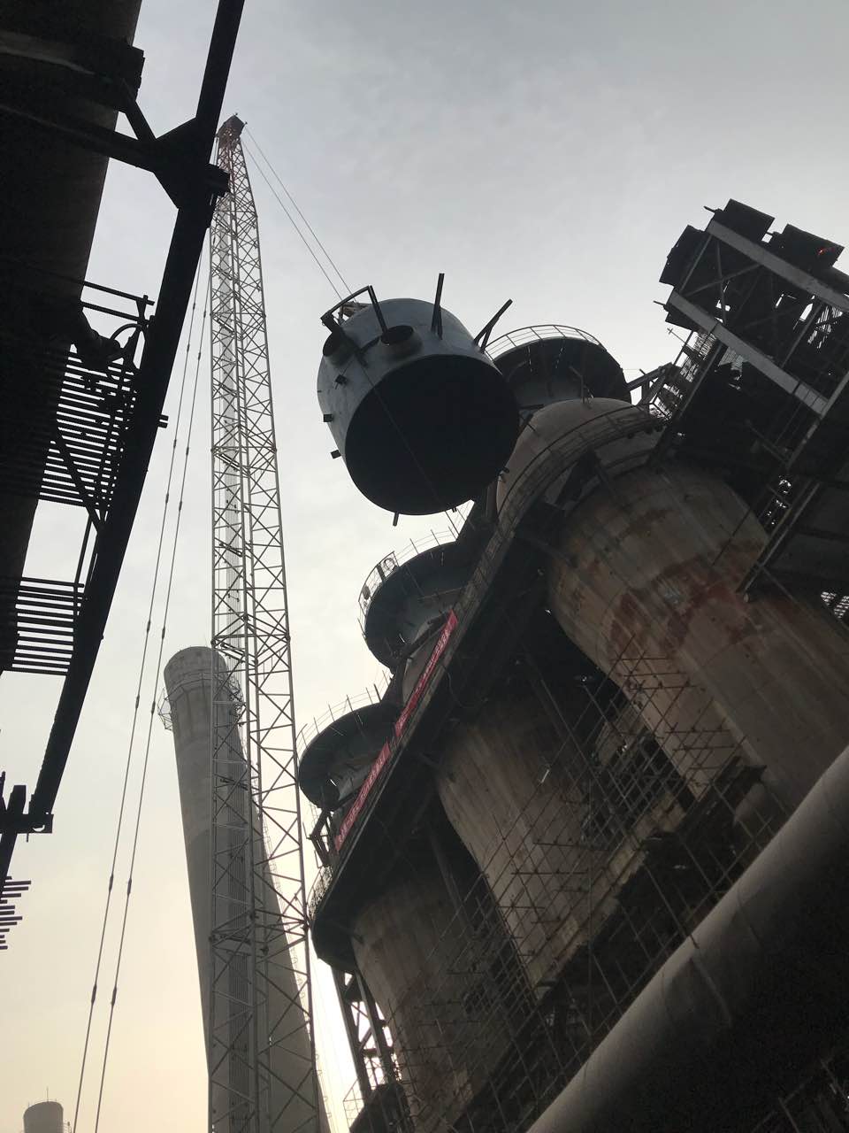 安陽沙鋼永興3#、4#580立方米高爐熱風(fēng)爐大修工程于11月15日正式開工,到今天共計(jì)14天的時(shí)間,先后完成了老熱風(fēng)爐系統(tǒng)的拆除及熱風(fēng)爐新建,完成耐材拆50%,鋼結(jié)構(gòu)拆除完成,設(shè)備拆除完成,自動(dòng)化系統(tǒng)拆除完成,新建爐殼已封頂兩座。