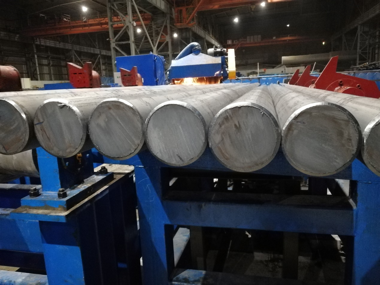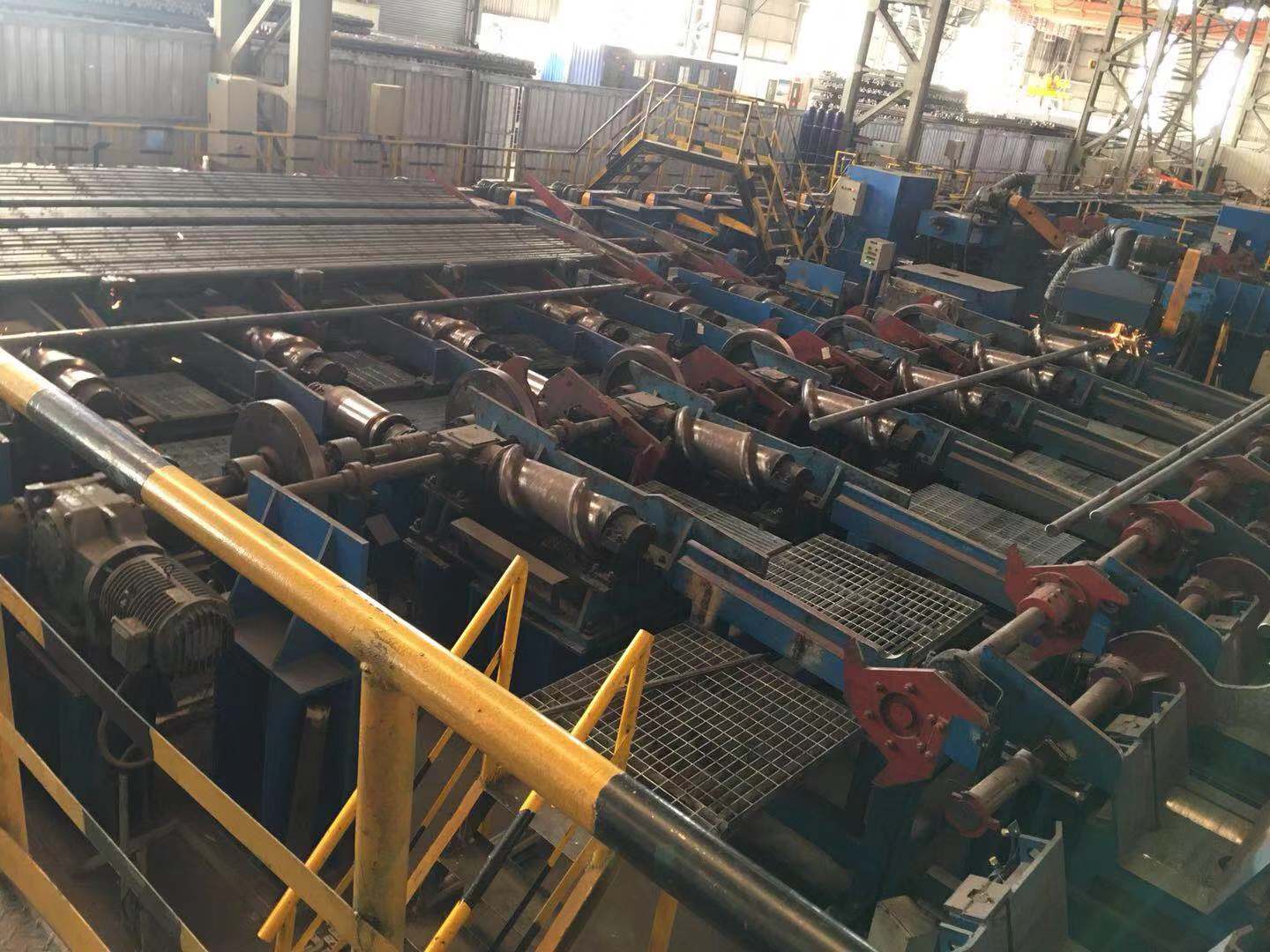 本次改造,山冶設(shè)計(jì)將在線(xiàn)倒棱技術(shù)應(yīng)用其中,實(shí)現(xiàn)了棒材熱軋鋸切分段后在線(xiàn)直接倒角,省去很多后部處理環(huán)節(jié)。2#在線(xiàn)倒棱機(jī)為最先進(jìn)的一款在線(xiàn)倒棱機(jī),設(shè)備運(yùn)用了多款專(zhuān)利技術(shù),有ST螺面輥道+旋轉(zhuǎn)平托以及隨跡浮動(dòng)磨削機(jī)組成的倒棱機(jī)組,在倒角效果和設(shè)備的穩(wěn)定性來(lái)講都為最優(yōu)設(shè)備。設(shè)備設(shè)計(jì)以輕拿輕放為基礎(chǔ),ST螺面輥道和旋轉(zhuǎn)平托機(jī)構(gòu)為恒轉(zhuǎn)速控制,棒材在磨削過(guò)程中始終保持同一種速度進(jìn)給、磨削,磨削效果受到了業(yè)主一致好評(píng)。