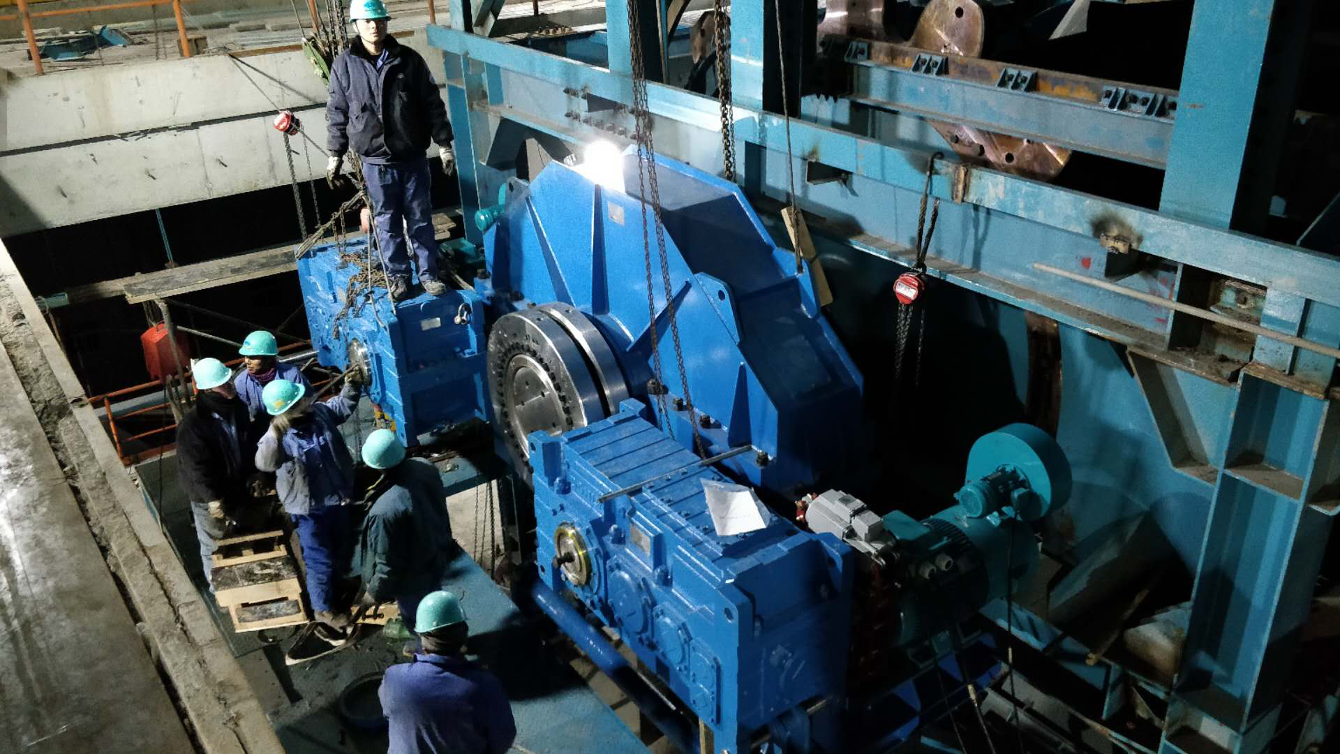 設(shè)備到場后,項目部根據(jù)之前制定的施工方案,連夜組織安裝隊伍卸車、安裝,安裝過程中,由于柔傳設(shè)備與燒結(jié)機頭輪設(shè)備為兩廠家制造,制造精度存在偏差,安裝前經(jīng)過反復(fù)測量還是發(fā)生了一次減速機在臨近完成穿軸工序時無法正常進行的狀況,此時已是第二天凌晨4點。項目部現(xiàn)場人員當即決定退出一次減速機進行處理后重新穿軸,待設(shè)備處理好第二次穿軸完成時已是第二天上午9點16分。期間,山冶設(shè)計日照燒結(jié)項目部、監(jiān)理人員24小時連夜督戰(zhàn),一刻都沒有休息,二十冶施工人員更是一鼓作氣完成了扭力桿、傳動電機、二次減速機的安裝,甚至吃飯都在現(xiàn)場臨時解決。電氣安裝人員與調(diào)試人員隨時待命,在設(shè)備安裝的同時穿插完成了電機的接線與調(diào)試工作。到下午6點18分,連續(xù)奮戰(zhàn)28小時后完成了整個柔傳設(shè)備的安裝調(diào)試工作,提前完成了預(yù)先制定的春節(jié)前施工任務(wù)。而在精品基地一期一步時,此安裝任務(wù)用了整整七天!這次僅用了28小時!
