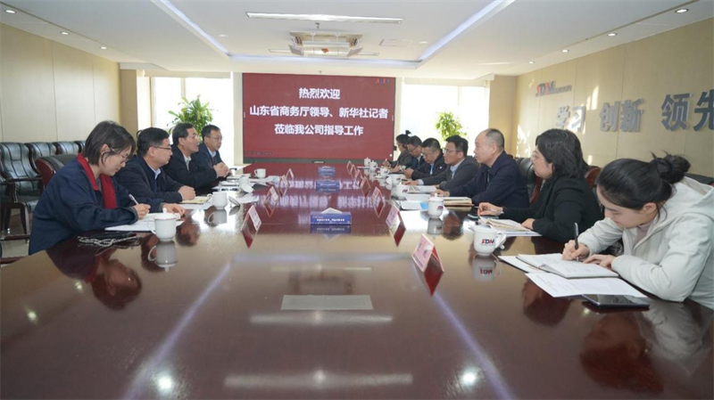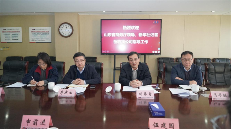 山東省商務(wù)廳、濟(jì)南市商務(wù)局及新華社記者來我公司進(jìn)行對(duì)外經(jīng)貿(mào)工作調(diào)研