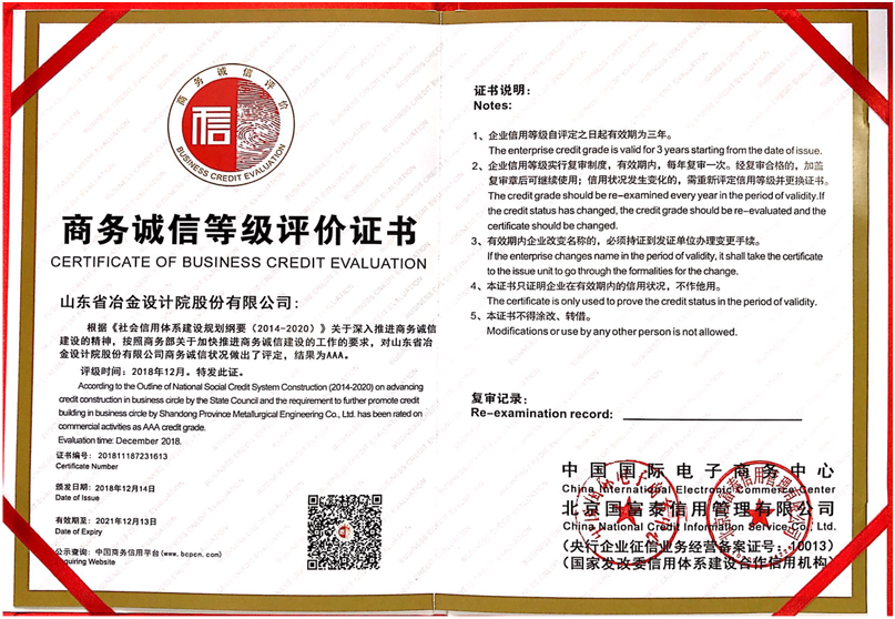 本次信用評級經過資料申報、行業(yè)調查、周邊訪問等一系列社會評估工作程序,經國家商務部中國國際電子商務中心、北京國富泰信用管理有限公司對公司的信用記錄、管理能力、經營水平、社會形象、財務狀況、顧客滿意度、發(fā)展前景等綜合實力進行嚴格、全面的分析和審核,最終公司獲得一致通過,并被評為商務誠信等級AAA級信用企業(yè)。這是對企業(yè)信用的最高等級評價,標志著公司強大的企業(yè)綜合實力和良好企業(yè)信用度獲得了高度認可。