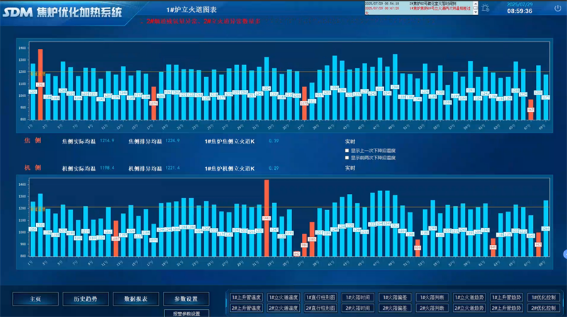 在煉焦環(huán)節(jié),焦?fàn)t自動(dòng)測溫和優(yōu)化加熱系統(tǒng)成為節(jié)能降耗的“利器”。276個(gè)立火道紅外測溫點(diǎn)實(shí)時(shí)采集溫度數(shù)據(jù),結(jié)合荒煤氣溫度與煙氣殘氧分析,系統(tǒng)自動(dòng)調(diào)節(jié)煤氣流量與分煙道吸力,預(yù)計(jì)使加熱煤氣消耗降低2.8%,全爐溫度均勻系數(shù)提升至0.92。通過火落時(shí)間預(yù)測與標(biāo)準(zhǔn)溫度動(dòng)態(tài)優(yōu)化,顯著減小結(jié)焦時(shí)間偏差,大幅減少了能源浪費(fèi)。
