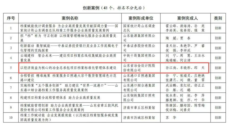 山冶設(shè)計(jì)入選山東省檔案館 “檔案服務(wù)企業(yè)高質(zhì)量發(fā)展案例”創(chuàng)新案例