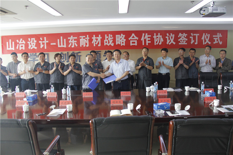 2019年5月16日,山冶設(shè)計與山東耐材戰(zhàn)略合作協(xié)議在濟南山冶設(shè)計辦公樓簽訂。山鋼集團黨委委員、副總經(jīng)理王向東,戰(zhàn)略規(guī)劃部副部長郝之峰,山冶設(shè)計董事長魏新民,總經(jīng)理衣忠德,副總經(jīng)理宋志順,山東耐材集團黨委書記、董事長車連房,黨委副書記、總經(jīng)理李文亮,副總經(jīng)理王文學、張延敏及相關(guān)人員出席了簽訂儀式。