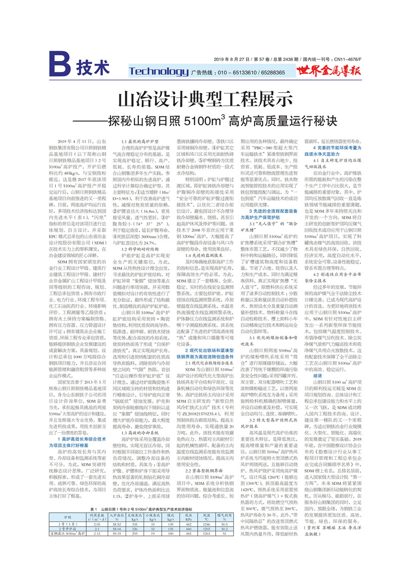 山冶設(shè)計典型工程展示——探秘山鋼日照 5100m3 高爐高質(zhì)量運行秘訣