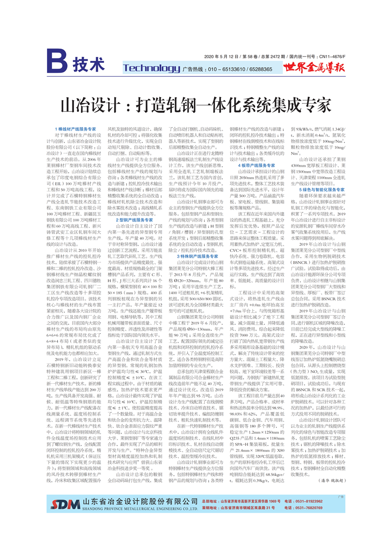 山冶設(shè)計:打造軋鋼一體化系統(tǒng)集成專家