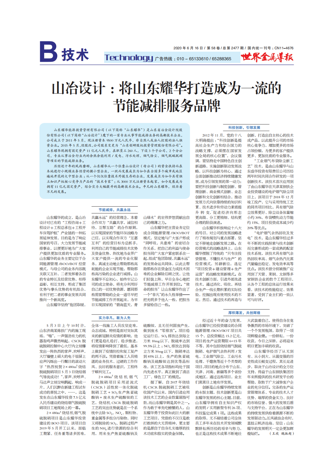 山冶設(shè)計(jì):將山東耀華打造成為一流的節(jié)能減排服務(wù)品牌